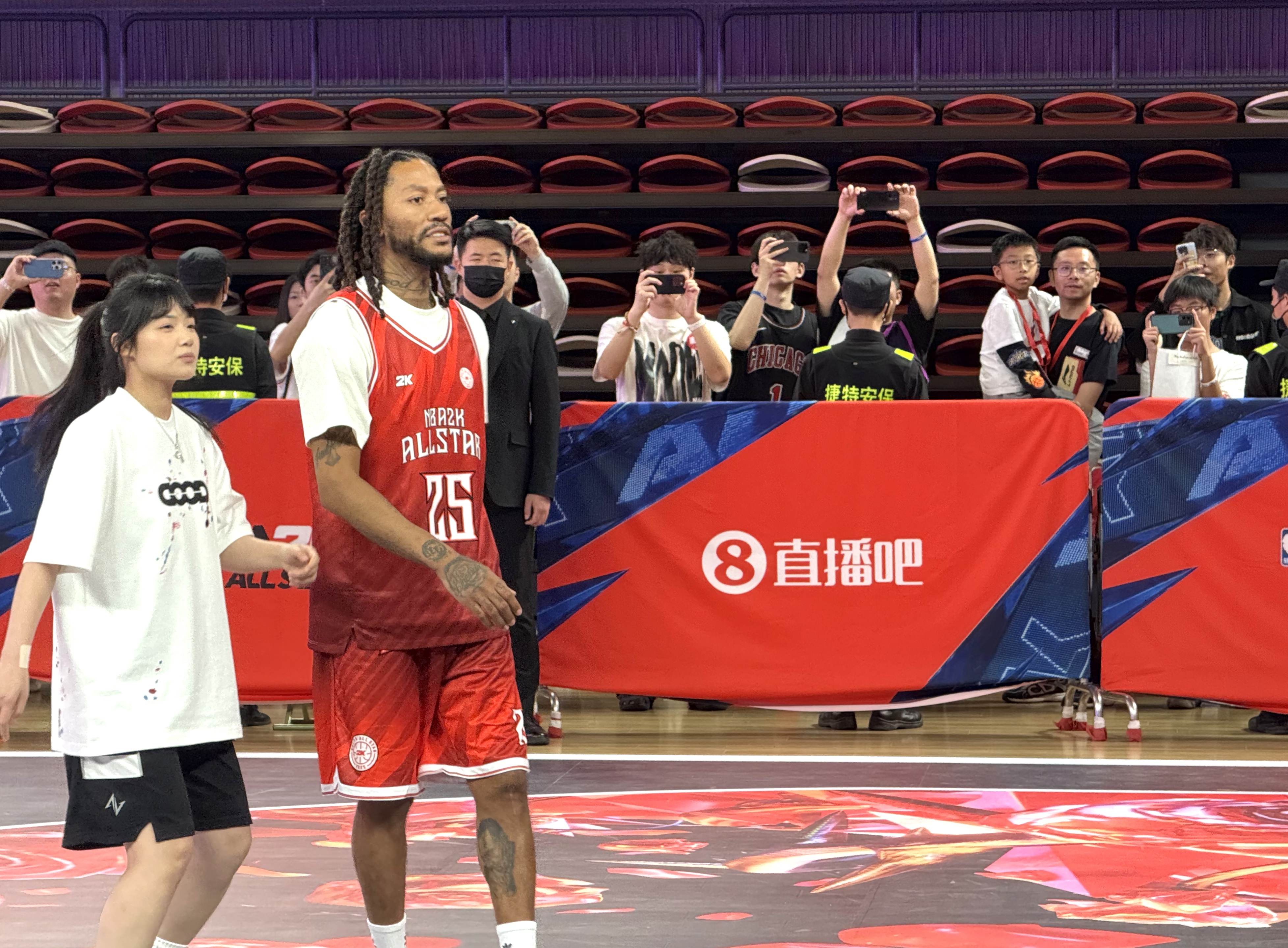 下午2点10分,活动准时开始,在全场几百名粉丝、游戏玩家“MVP”的欢呼声中,前NBA球星、“风城玫瑰”德里克-罗斯闪亮登场。