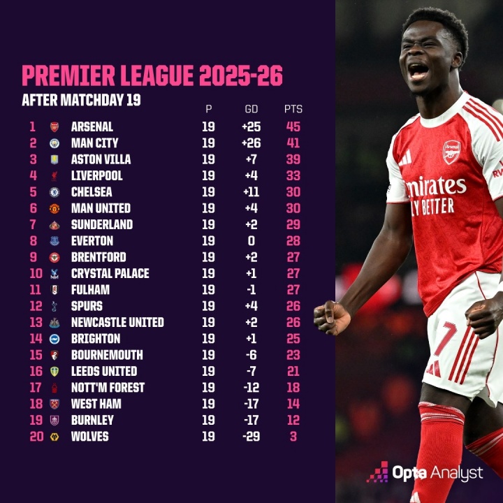01月02日讯 本赛季英超进行了19轮,赛季已经过半,积分榜上的竞争依旧非常激烈。第5名切尔西到第14名布莱顿之间的差距只有5分,一场球的输赢可能让原本中下游的球队冲向欧战竞争区,也可能让冲击前四的球队直接跌出前十。